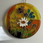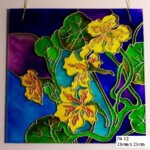 Ostatnio maluję na szkle fusingowym, co też jest fascynujące, gdyż każdy kawałek szkła po wypaleniu zmienia się niepowtarzalnie. Głównie są to małe formaty.
